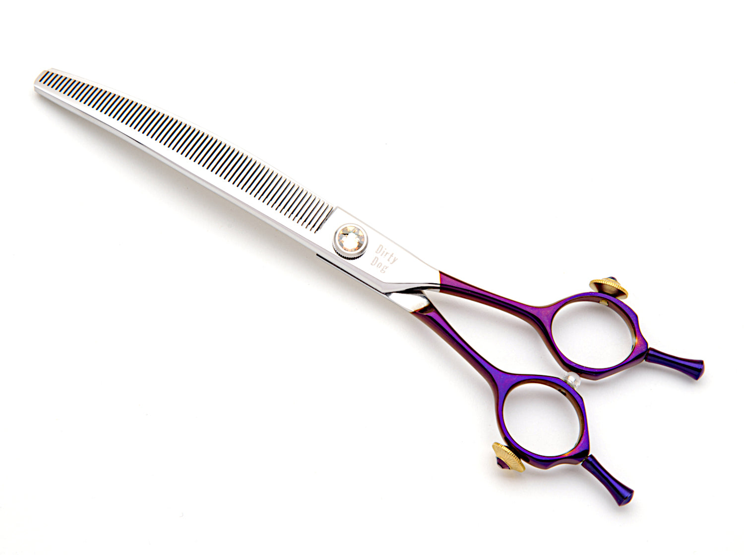 This Dirty Dog Best In Show Curved thinner provides an extremely smooth performance which groomers love! It is perfect for thinning the belly and legs as well as other curved areas, and since the it has a straight opposing handle design, the groomer can easily flip the shear to cut with the curve up or down - great for hard-to-reach areas. Best in Show grooming shears are high quality professional grooming shears designed by Best in Show groomers and handlers to effortlessly glide through the fur.