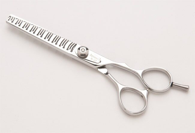 This Dynasty texturizer is 6 inches long and gives hair a unique texture to simulate point cutting or chipping. It accomplishes this simulation with the special pattern of its 8 large and 19 small teeth. This shear is a great time saver in the beauty salon and a great economical price, too.