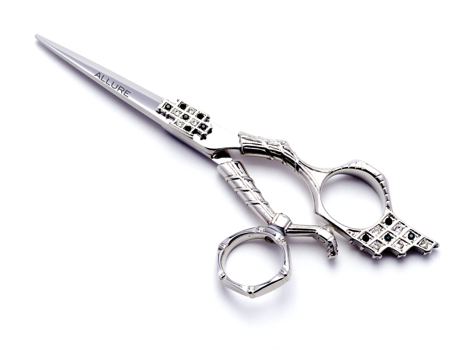 The Mirage Allure’s chic geometric handle design brings additional class to this high-quality beauty shear. The ergonomic swivel thumb handle is adorned with black and clear gems arranged in a geometric pattern that complements the similar design of the tension system as well as additional geometric engravings that further enhance the attractive handle design of the shear. However, no quality is spared by this shears eye-appealing design! The Japanese V-10 Super-Cobalted stainless steel enable its lightweight feel and the convex edge enables a smooth professional quality cut. As with all Mirage shears, the Allure has a lifetime warranty against faulty materials or workmanship, so for the stylist who wants the best in quality, ergonomics and appearance, this shear is an excellent choice!